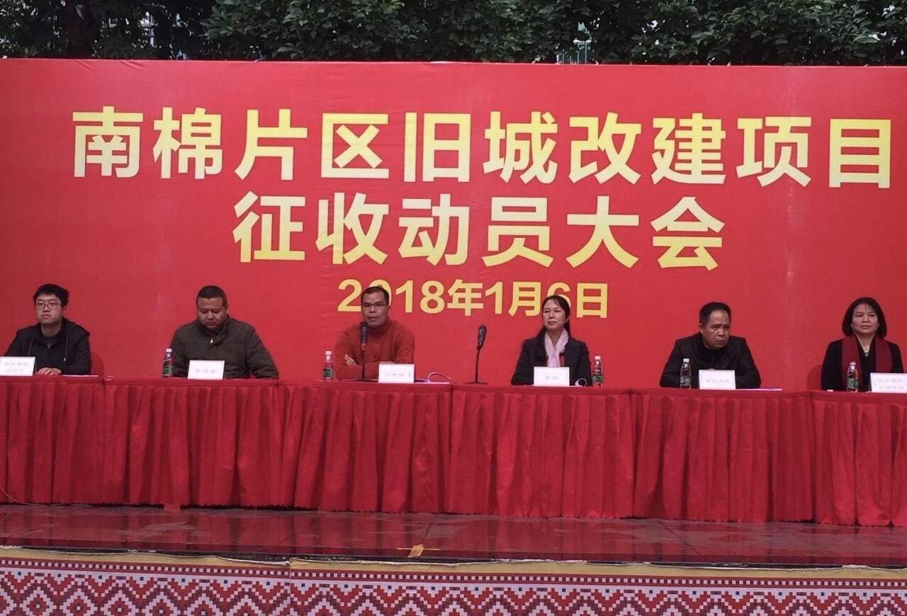 2018年1月6日上午,西乡塘区政府在南宁师范学校附属小学内召开南棉片区旧城区改建项目征收动员会。市建委领导、市征收办领导、城区政府副区长宁世朝、城区政协副主席李桃、北湖街道党工委书记罗美玲、城区政府办、旧改办、拆迁办等相关部门领导参加了会议。