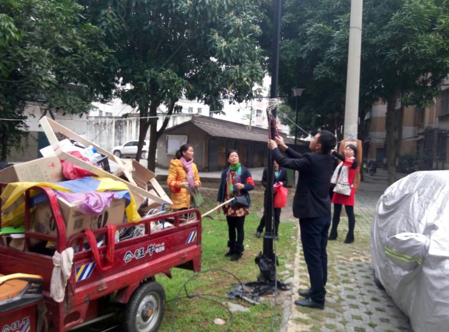 2018年1月4日上午,西乡塘街道武装部部长杨胜军和秀灵北社区书记、主任及网格员到秀灵公寓,与物业工作人员一起巡查小区,对于巡查当中发现的问题及时向物业指出并提出整改意见,要求物业加强对公寓的脏、乱、差进行整治,构建整洁美丽的环境。街道办杨部长同时对小区内规划机动车和非机动车停放点消防安全工作提出了意见。