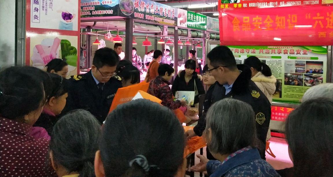 1月16日上午,衡阳食药所联合西乡塘食品药品安全管理协会,在白苍岭布匹市场负一层开展春节前食品安全宣传活动。