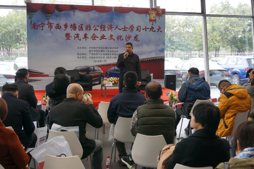 1月9日下午,由西乡塘区委统战部和工商联主办的“西乡塘区非公经济人士学习十九大暨汽车企业文化沙龙”活动在广西钜荣汽车贸易有限公司举行,南宁市工商联副主席陈长毅,南宁市工商联调研员邓炳华,西乡塘区委常委、统战部长林拓,西乡塘区政协副主席、工商联主席庞晓民,广西桂商总会秘书长丘健等领导出席活动,辖区60多名民营企业家和商会代表齐聚一堂,学习十九大精神,交流创业经验,探讨在新形势下企业如何持续创新、转型发展。